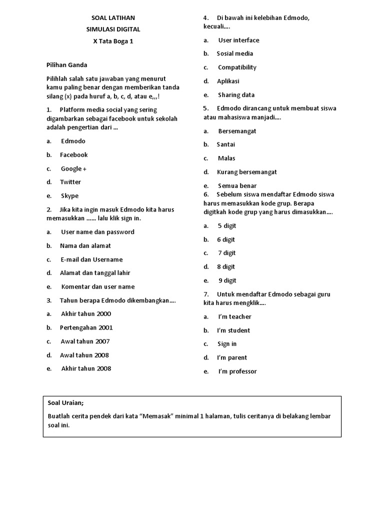 Doc Soal Latihan Simulasi Digital X Multimedia 1 Alex Yanto Academia Edu from 0.academia-photos.com Check spelling or type a new query. Untuk mendaftar edmodo sebagai siswa kita harus mengklik. We did not find results for: Maybe you would like to learn more about one of these?